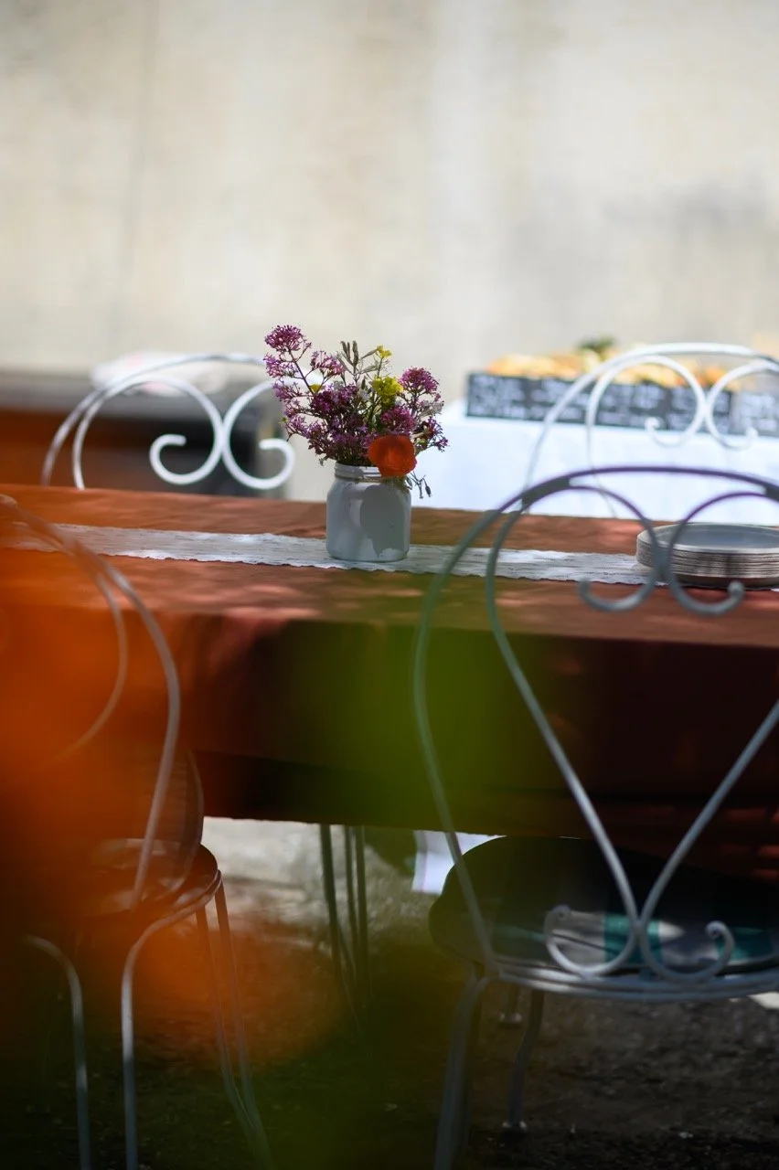 Des petits éléments déco étaient disposés ici et là, en toute simplicité : bocaux fleuris, bougies, fanions.